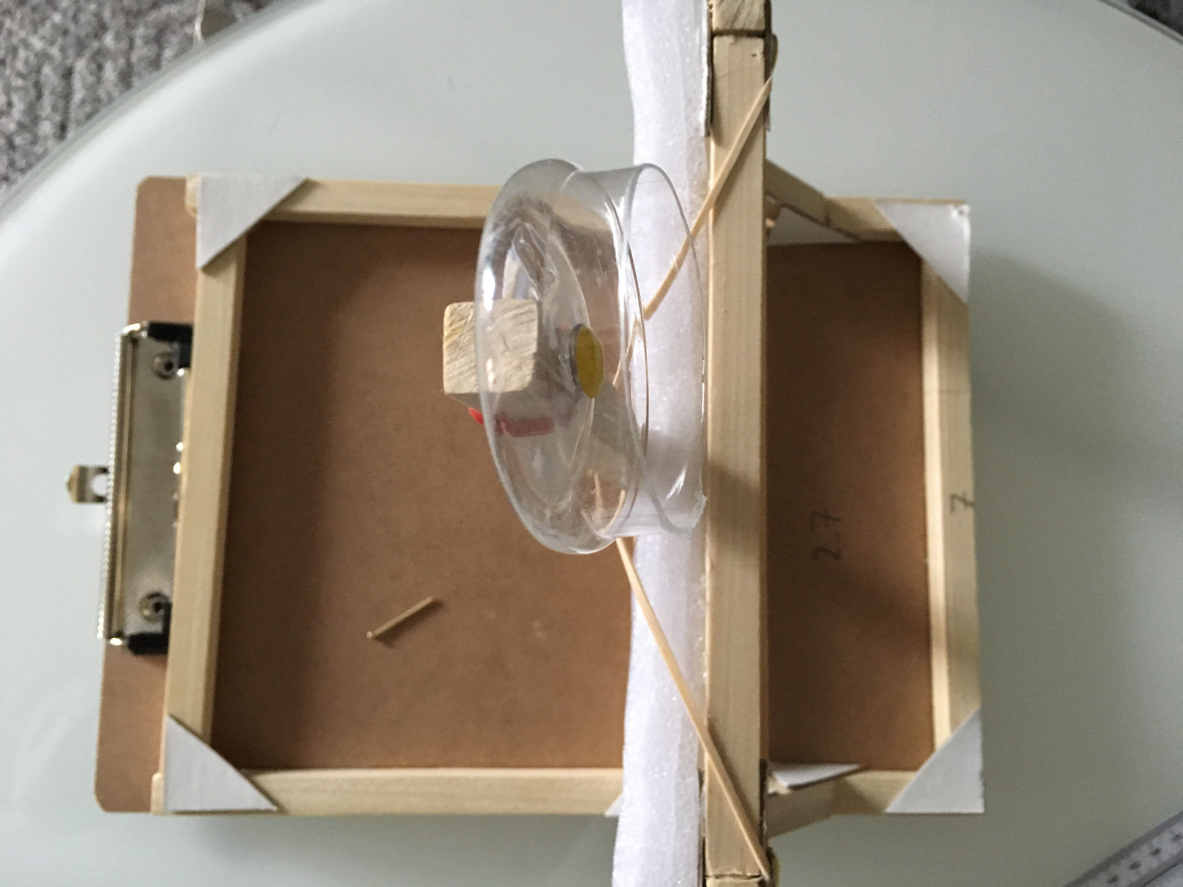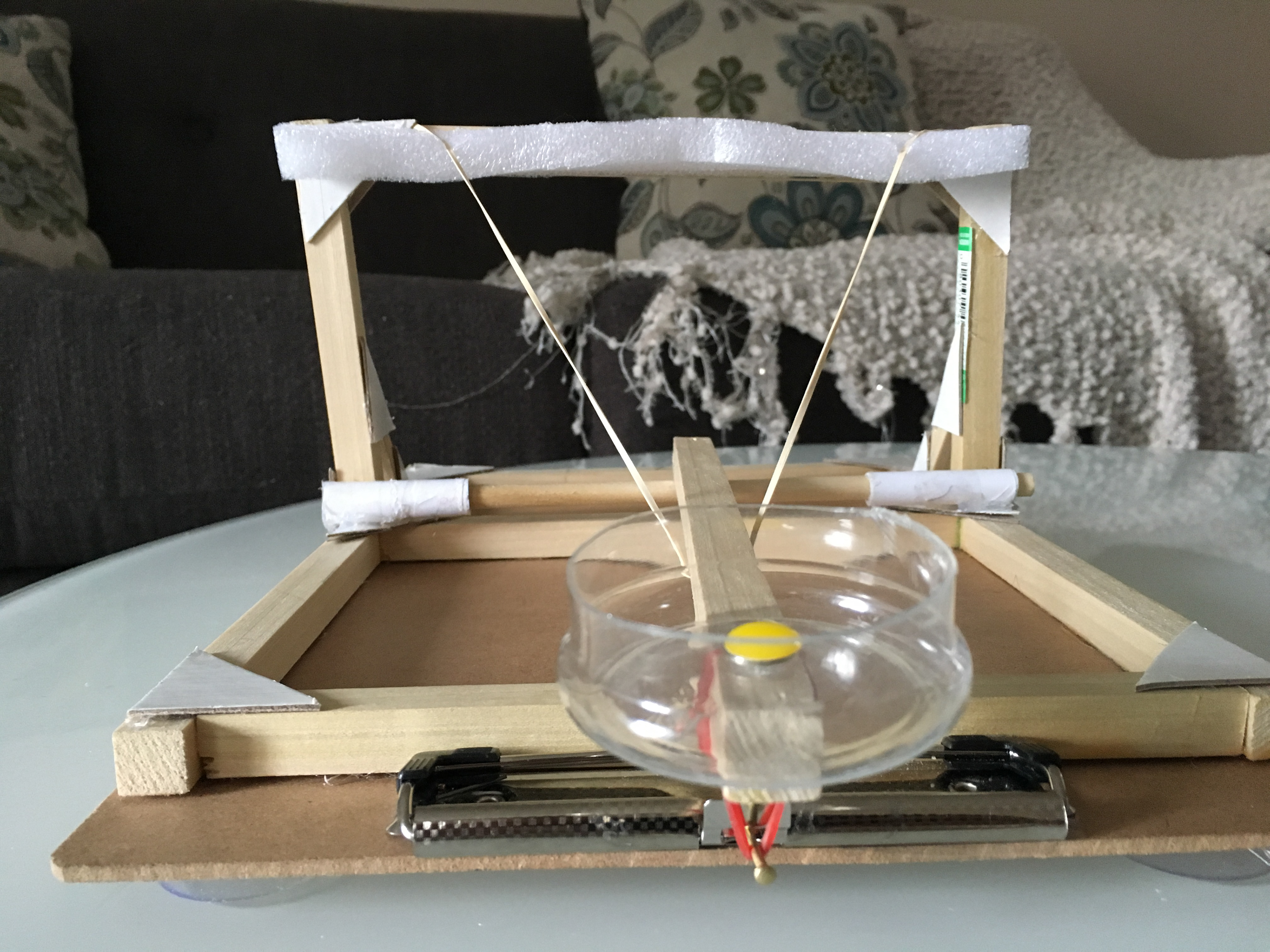 The Aim and Shoot Design Project involves teams competing to create a cost-effective device capable of striking a 12x12-inch target sheet and subsequently allowing the ball to drop into a basket positioned below it. The supporting beam measures 16 inches in length, and the base holding the basket extends 12 inches from the edge of the beam to the basket. The base has a thickness of 1.625 inches. The rubber ball used in the competition has a diameter of 1.75 inches, while the basket's bottom diameter is 7 inches. The distance between the device and the basket is 16 inches.